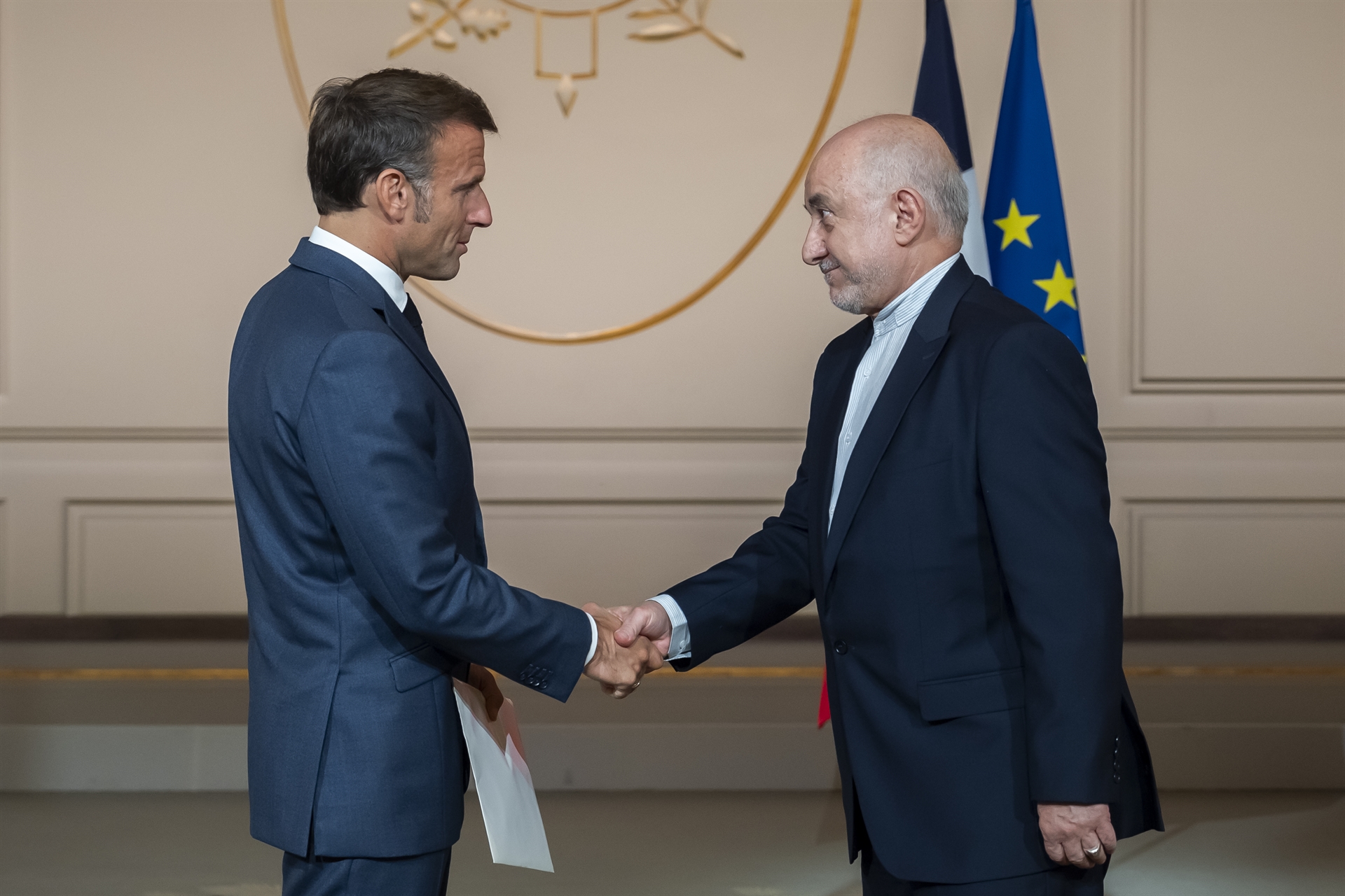 Son excellence, monsieur Mohammad AMIN NEJAD, le nouvel ambassadeur de la République Islamique d'Iran à Paris, a remis sa lettre de créance au président français, Emmanuel MACRON au cours d'une cérémonie officielle à l'Elysées le 17 sptembre 2024.