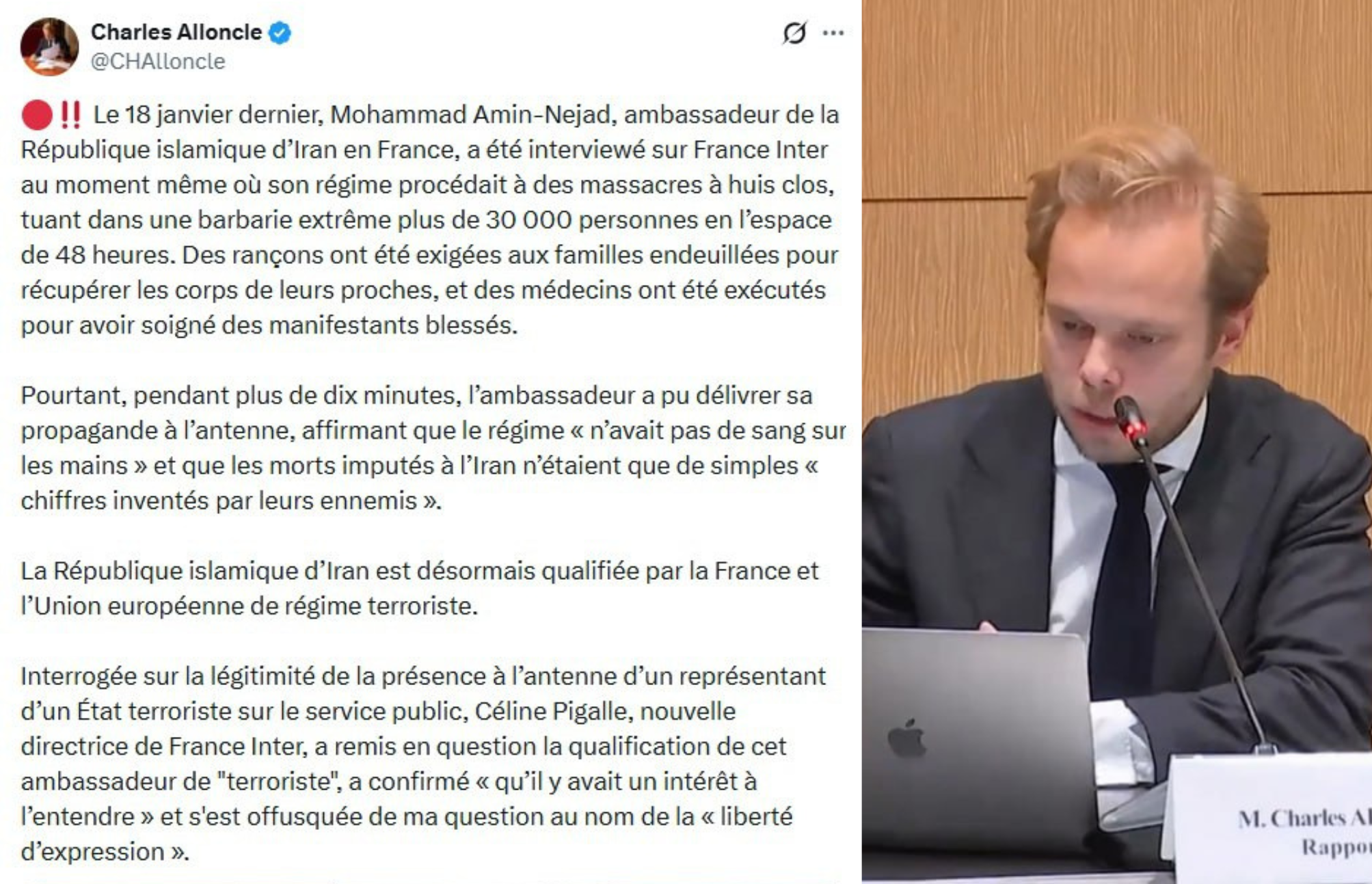 À la suite de récentes déclarations publiques d’un député de l’Assemblée Nationale française relayées sur les réseaux sociaux, mettant en cause la présence sur France Inter de S.E.M. Mohammad Amin‑Nejad, Ambassadeur de la République islamique d’Iran en France, et présentant l’Iran comme un «État terroriste» dont l’ambassadeur serait le représentant, le service de la diplomatie publique de l’Ambassade souhaite apporter les précisions suivantes :