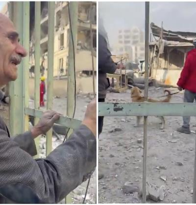 Photo: Un vieil homme patiente devant les décombres de son immeuble, en attendant que soient sorties et identifiés les corps de ses proches.