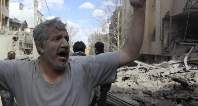 توضیح تصویر: پیرمردی سالخورده در برابر آوار خانه‌اش چشم‌انتظار است تا پیکرهای بستگانش از زیر آوار خارج و شناسایی شوند.